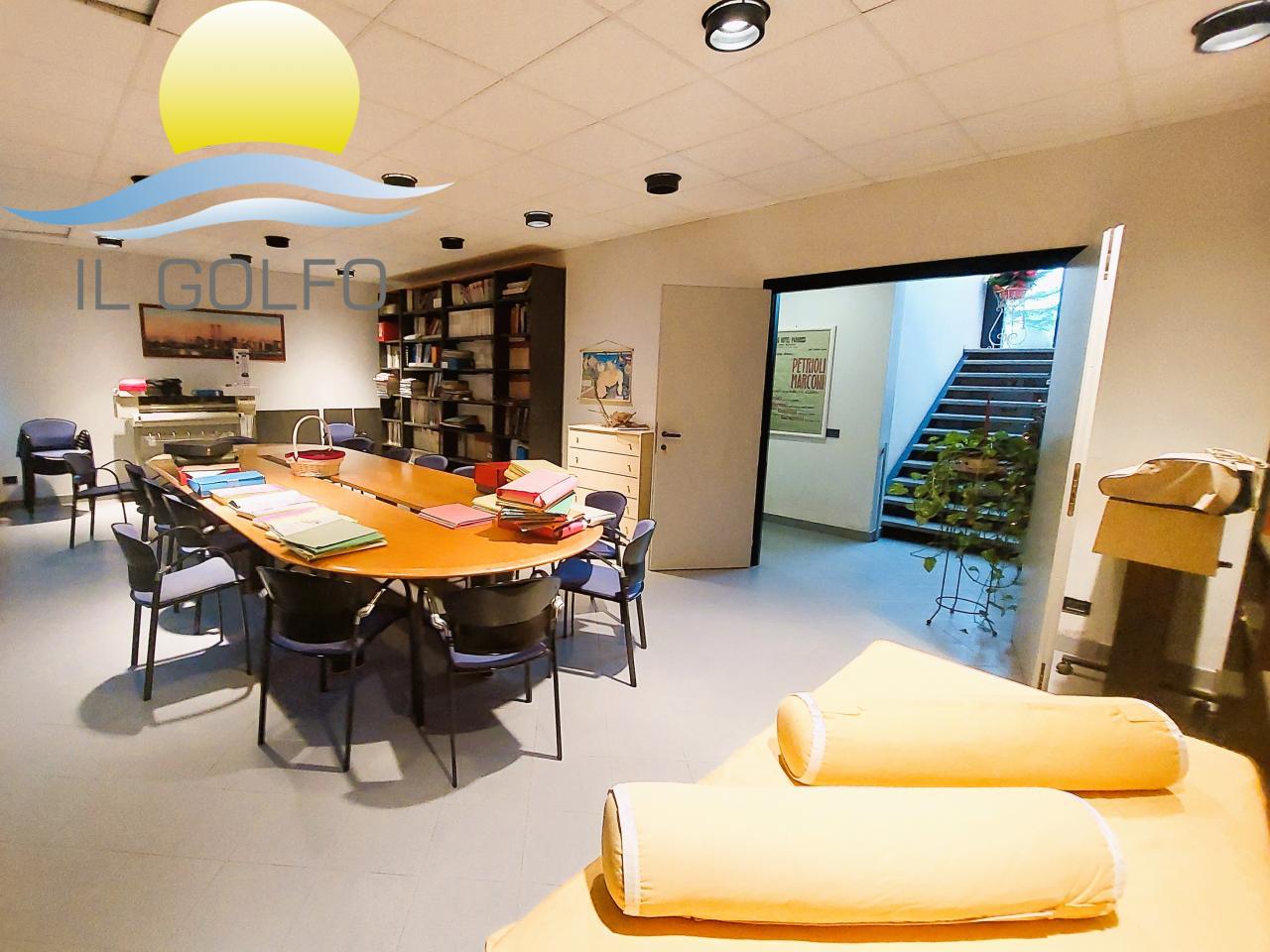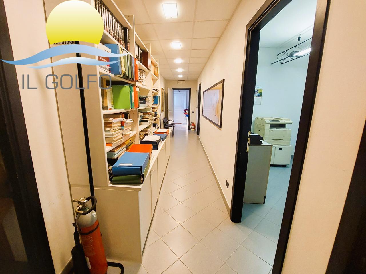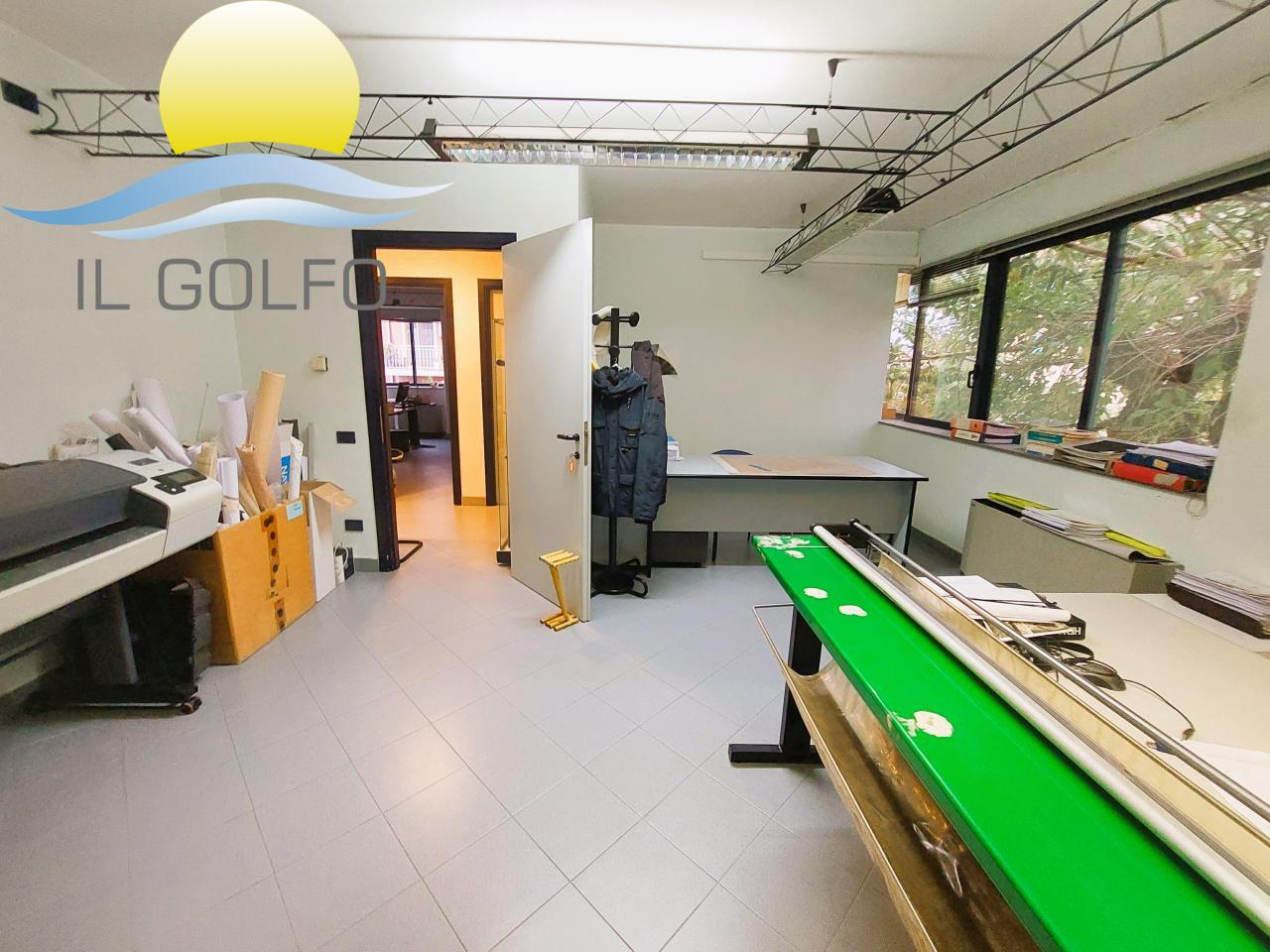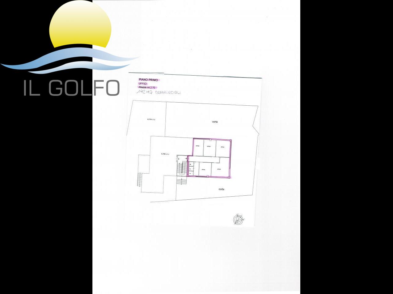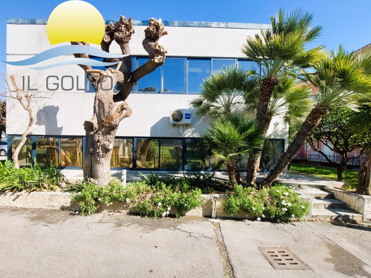 L'Immobiliare IL GOLFO propone in vendita in esclusiva Uffici con spaziosa corte esterna dotata di cancello elettrico e agrumeto, ampi spazi interni e finestre studiate appositamente per creare un ambiente con molta luce naturale. La struttura ha una superficie commerciale di 339 mq ed è disposta su 2 livelli. Al piano terra troviamo un'ampia sala riunione, un grande ufficio, un ufficio più piccolo ora utilizzato come archivio, una cucina/sala relax ed un bagno con doppio wc. IL tutto finestrato. Il primo piano è collegato tramite una scala interna ed è composto da 5 uffici ed un bagno con al suo interno doppio wc e un ripostiglio. Il riscaldamento è autonomo con pompe di calore caldo/freddo. All'interno della corte esterna troviamo fiori e piante oltre ad un ampia zona parcheggio. Per maggiori informazioni chiedere del rif. 9934