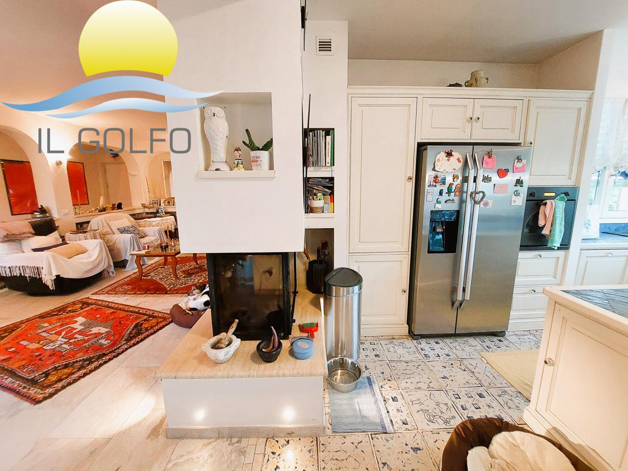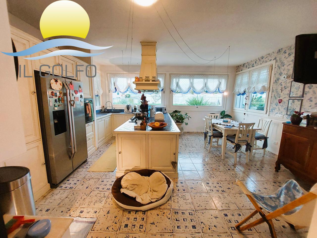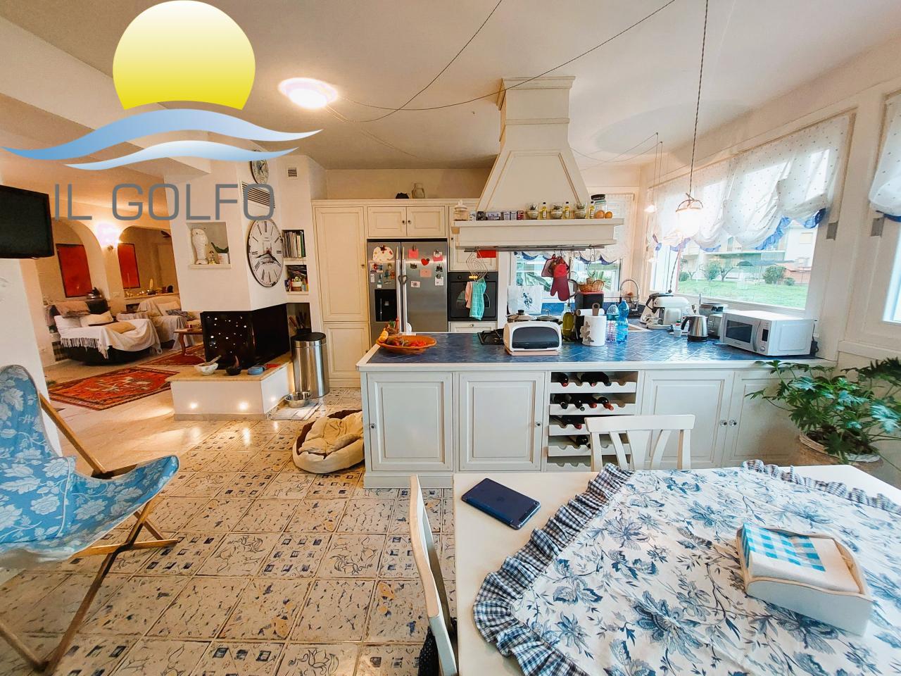 L'Immobiliare IL GOLFO propone in vendita in esclusiva una villa disposta su 2 livelli. Al primo piano abbiamo il piano abitativo con una superficie commerciale di 146 mq ed è composto da uno spettacolare salone con camino con affaccio sul terrazzo, una cucina abitabile con penisola studiata nei minimi particolari, una dispensa, una camera da letto matrimoniale con cabina armadi, un bagno ed una camera più piccina con bagno privato al suo interno. Tramite scala esterna si accede al meraviglioso giardino. Al piano sottostante invece troviamo un magazzino di circa 60 mq compreso di lavanderia ed un box di 12mq. Il tutto con ingresso indipendente. Per maggiori informazioni chiedere del rif. 9935