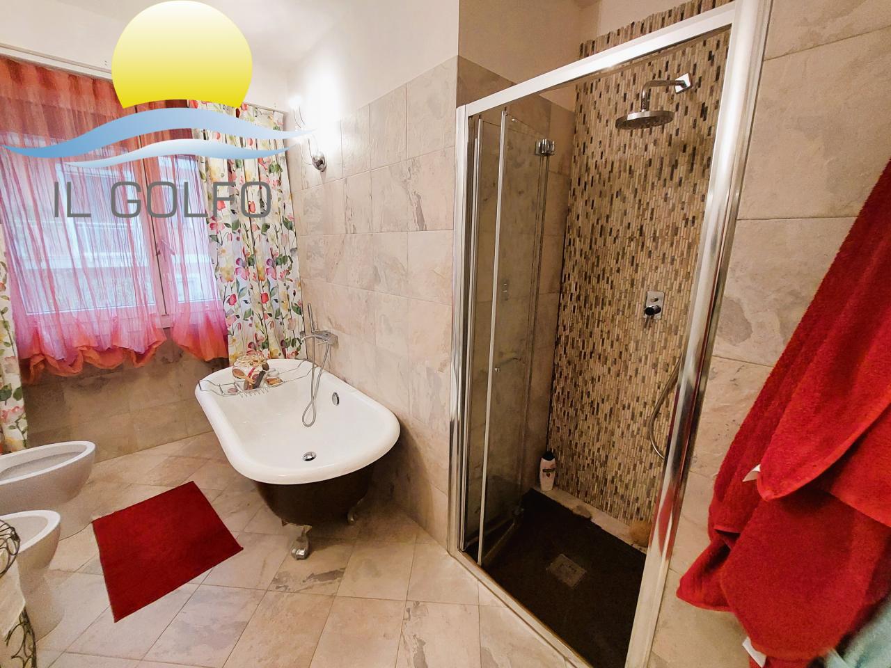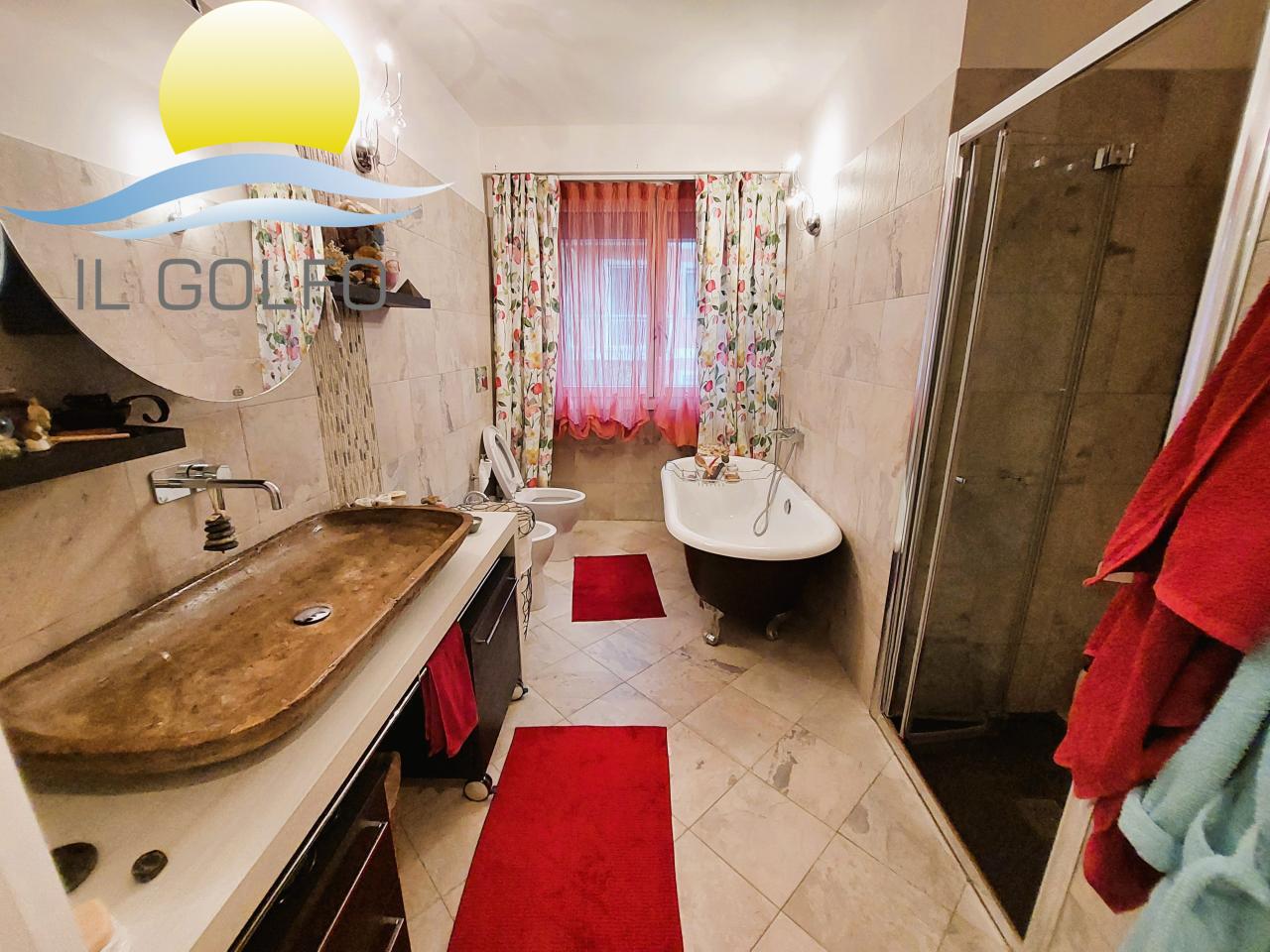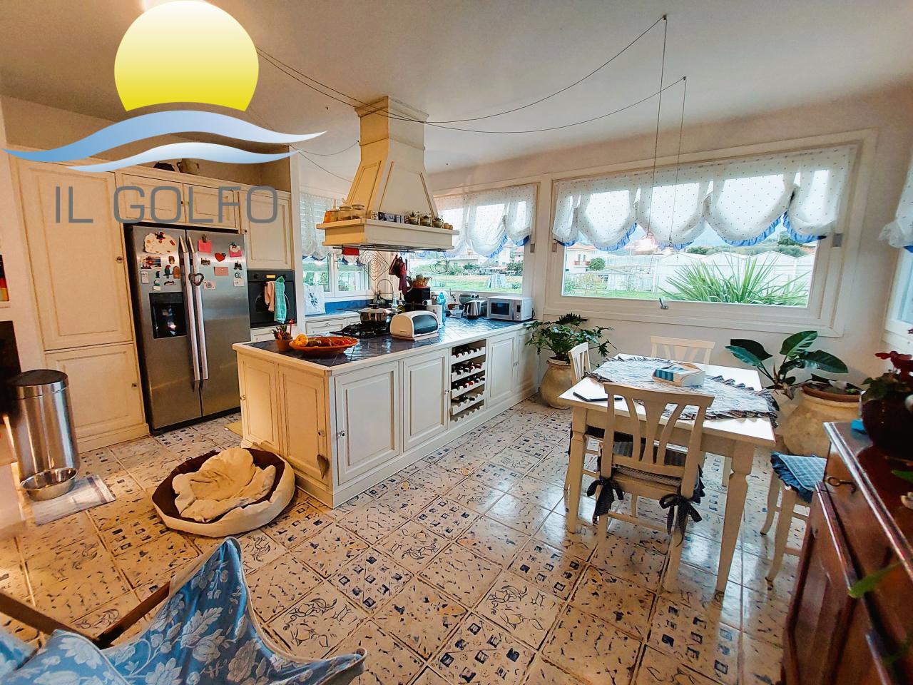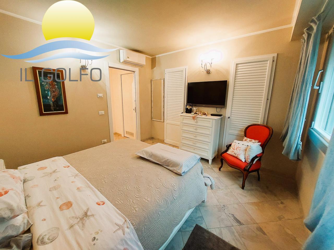 L'Immobiliare IL GOLFO propone in vendita in esclusiva una villa disposta su 2 livelli. Al primo piano abbiamo il piano abitativo con una superficie commerciale di 146 mq ed è composto da uno spettacolare salone con camino con affaccio sul terrazzo, una cucina abitabile con penisola studiata nei minimi particolari, una dispensa, una camera da letto matrimoniale con cabina armadi, un bagno ed una camera più piccina con bagno privato al suo interno. Tramite scala esterna si accede al meraviglioso giardino. Al piano sottostante invece troviamo un magazzino di circa 60 mq compreso di lavanderia ed un box di 12mq. Il tutto con ingresso indipendente. Per maggiori informazioni chiedere del rif. 9935