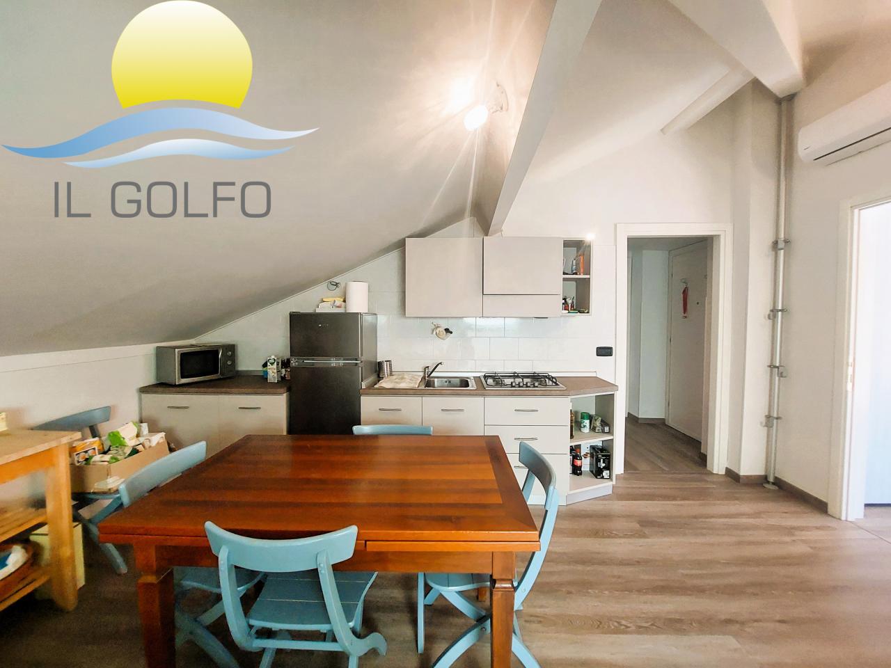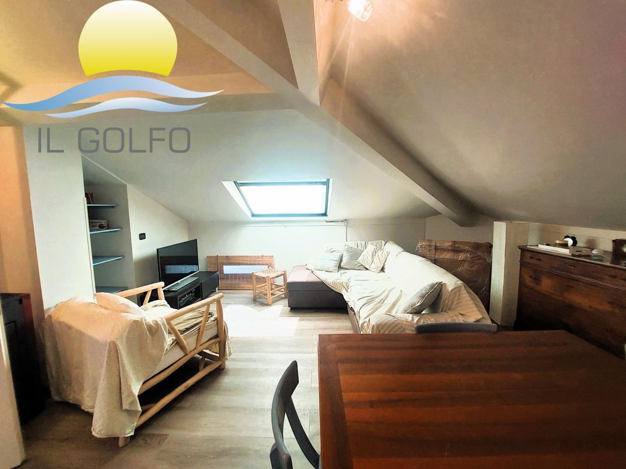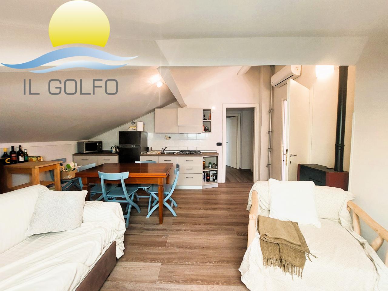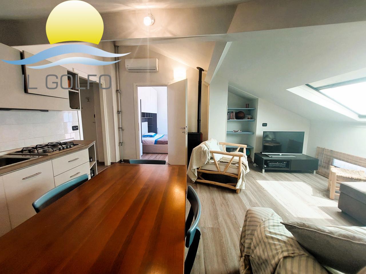 L'Immobiliare Il Golfo propone in vendita TRILOCALE MANSARDATO, ristrutturato e coibentato quest'anno, posto al secondo ed ultimo piano di una villa storica sita a pochi passi dal mare ed avente accesso diretto alla zona mare senza dover attraversare la Via Aurelia (strada principale di Diano Marina). L'appartamento è composto da ingresso nel disimpegno, soggiorno con angolo cottura dotata di Velux vista mare, una camera da letto con ampia vetrata scorrevole con accesso al balcone anch'esso vista mare esposto a sud, una camera da letto con velux ed un bagno finestrato con doccia. La villa non è dotata di ascensore, ma come potrete evincere dalle foto gli scalini sono molto bassi. No posto auto, possibilità di fare abbonamento mensile o annuale nel Comune per utilizzare i parcheggi a pagamento. Riscaldamento autonomo con pompe di calore caldo/freddo e stufa a pellet e boiler per acqua calda sanitaria. Per maggiori informazioni chiedere del rif. 10085