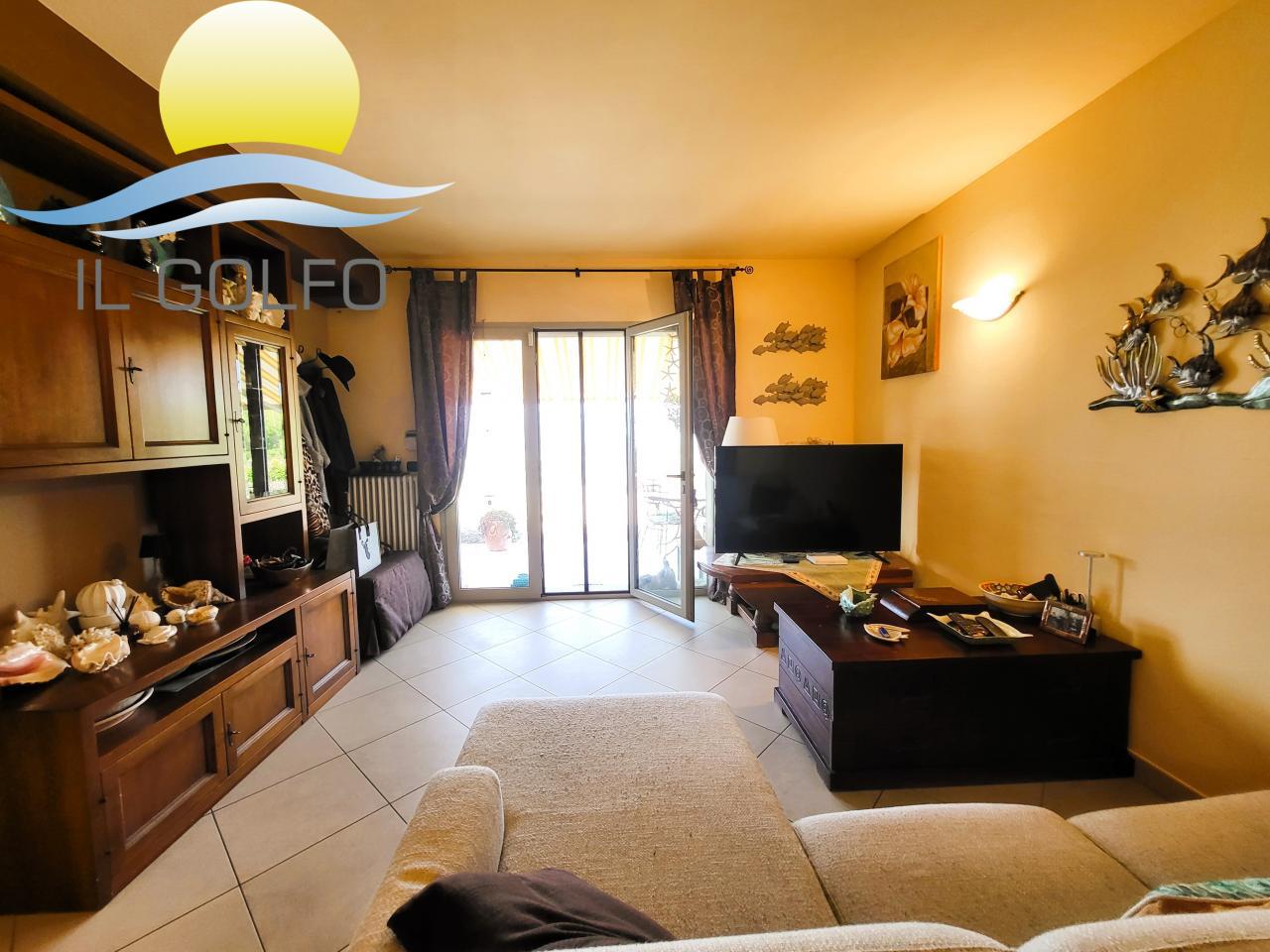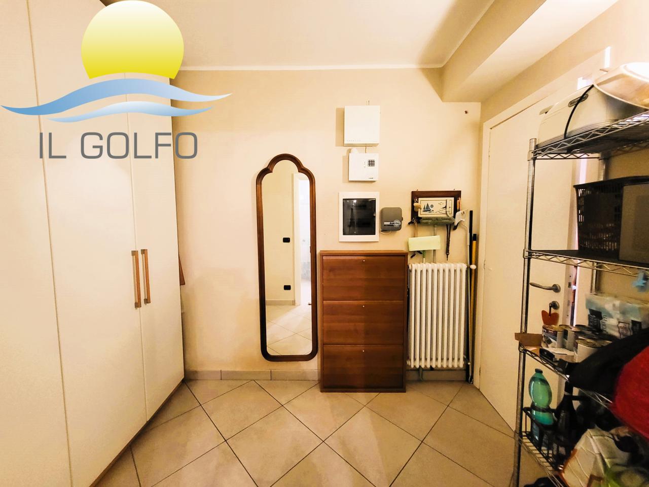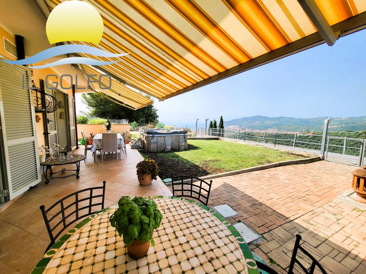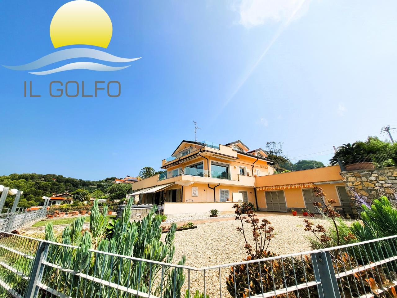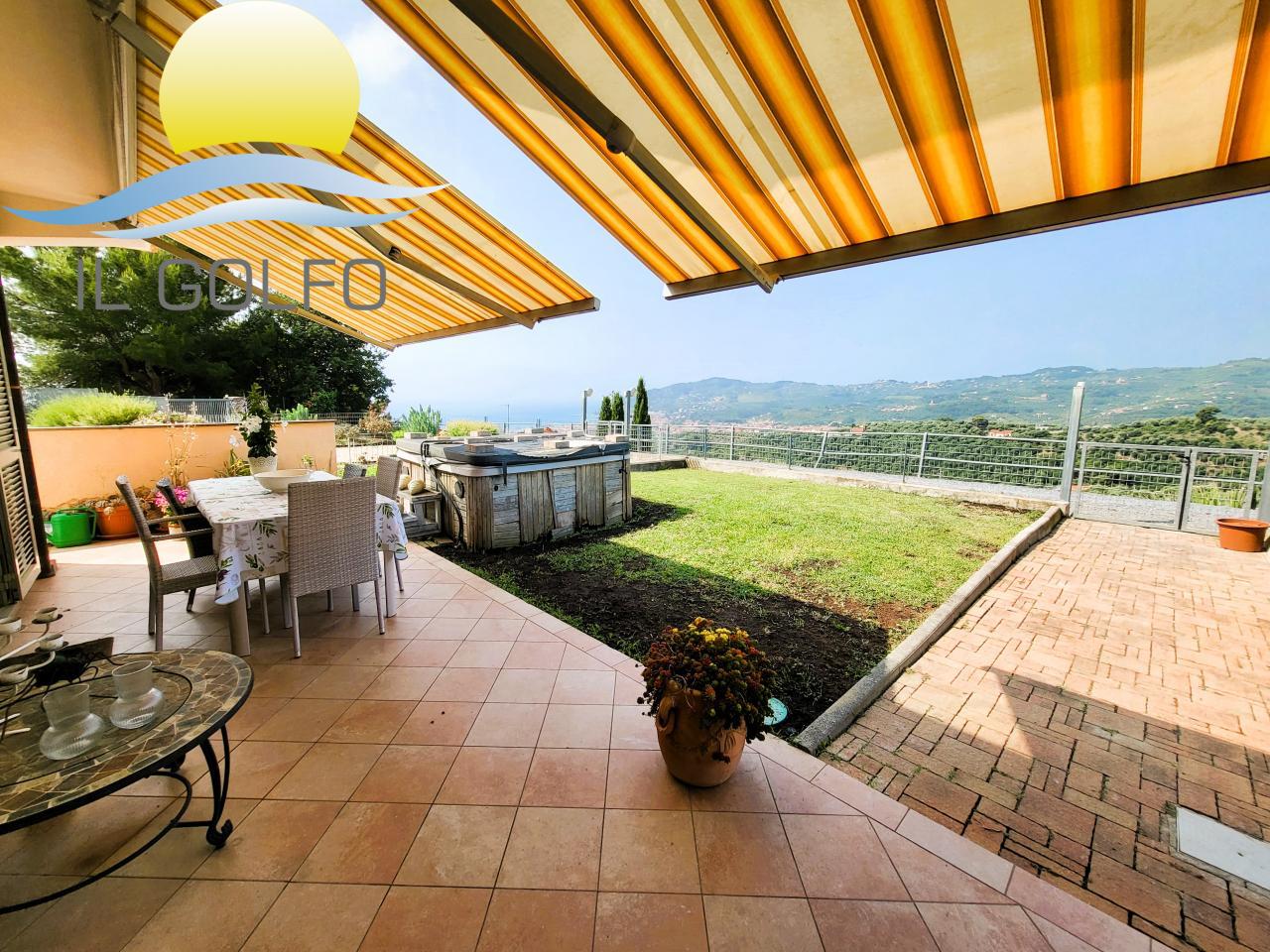 L'Immobiliare Il Golfo propone in vendita a Diano Castello in zona Monade (parte alta - 2 km dal mare) stupendo trilocale in villa di recente costruzione posto al piano terra e dotato di meraviglioso giardino con vista mare. Il trilocale si trova in una villa con poche unità abitative ed è composto da ingresso nel grande giardino privato in parte terrazzato e dotato di tende da sole, dove si può godere di una splendida vista mare aperta! Entrando troviamo la zona giorno con soggiorno e cucina open space, una camera da letto matrimoniale, una cameretta ( visibile una parte di cameretta---> in foto non arredata ---> la finestra è sostituita con una classica finestra 2 ante), un grande antibagno che è stato arredato a cabina armadio ed un bagno, molto spazioso, dotato di doccia. Il riscaldamento è centralizzato con un unico bombolone GPL, ma provvisto di singoli contatori per ogni abitazione, quindi a consumo. E' presente l'aria condizionata. Le spese condominiali annue sono di circa € 300.00 + ogni biennio € 400,00 per la potatura delle piante condominiali. Completano la proprietà n.2 posti auto, adiacenti all'abitazione e situati all'interno del cortile chiuso condominiale. Posizione dominante sul Golfo Dianese, vista stupenda, trilocale conforme alle normative vigenti. Per maggiori informazioni chiedere del rif. 10176